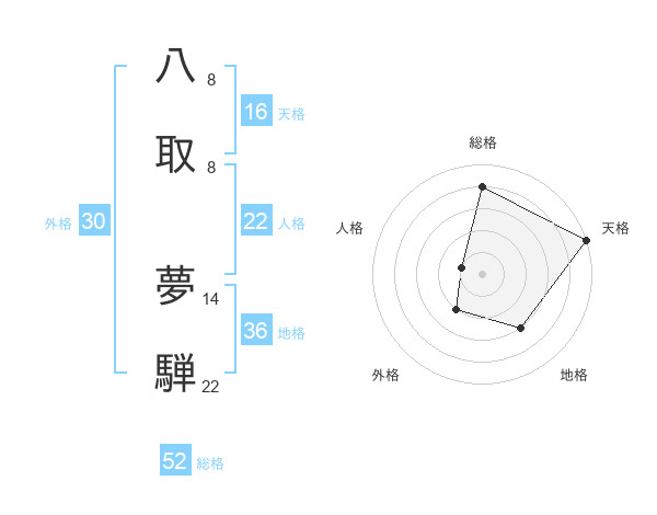 八取 夢騨さんの総格は52画の4点!