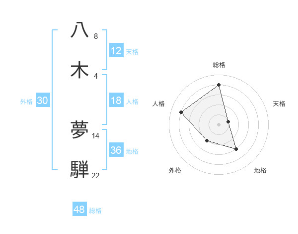八木 夢騨さんを姓名の画数から五運を鑑定