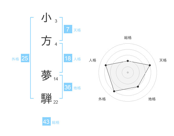 小方 夢騨さんを姓名の画数から五運を鑑定