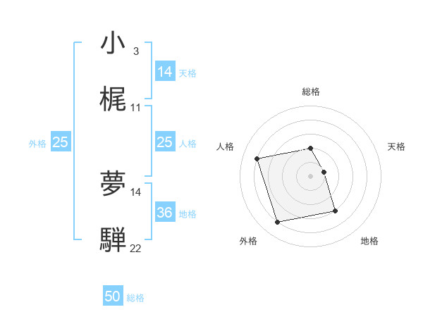 小梶 夢騨さんを姓名の画数から五運を鑑定