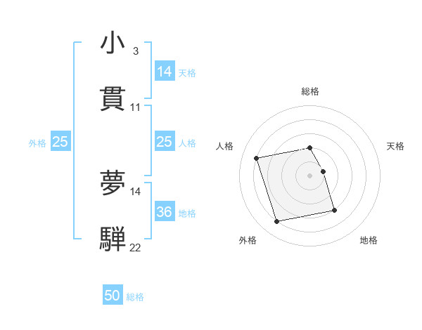 小貫 夢騨さんを姓名の画数から五運を鑑定