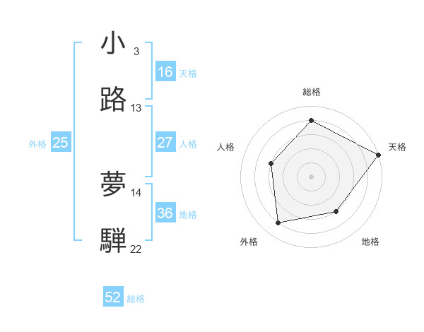 小路 夢騨さんの総格は52画の4点!