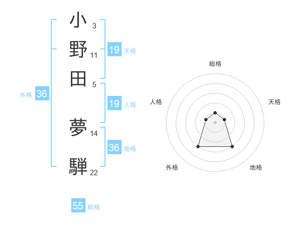 小野田 夢騨さんを姓名の画数から五運を鑑定