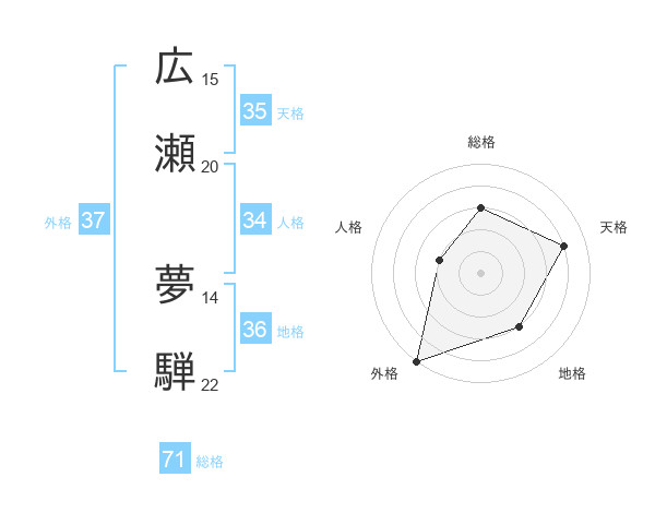 広瀬 夢騨さんを姓名の画数から五運を鑑定