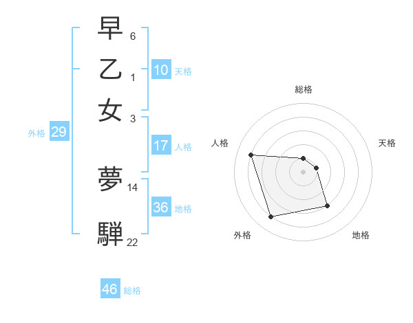 早乙女 夢騨さんを姓名の画数から五運を鑑定