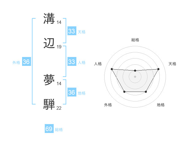 溝辺 夢騨さんを姓名の画数から五運を鑑定