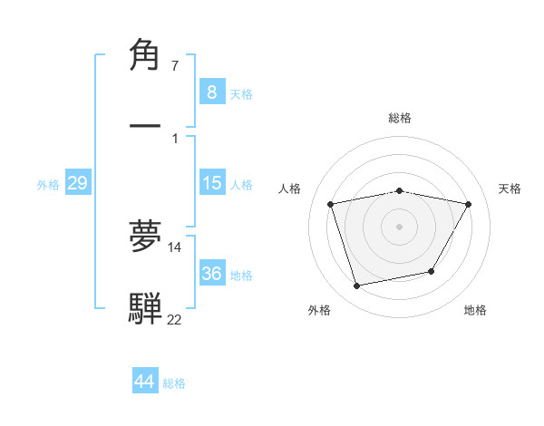 角一 夢騨さんの総格は44画の2点!