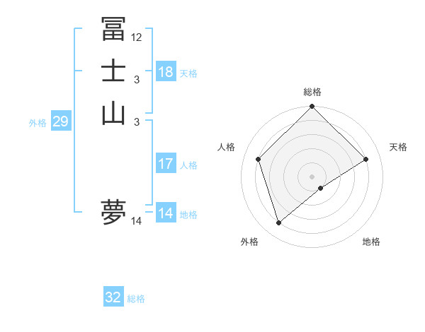 冨士山 夢さんの総格は32画の5点!