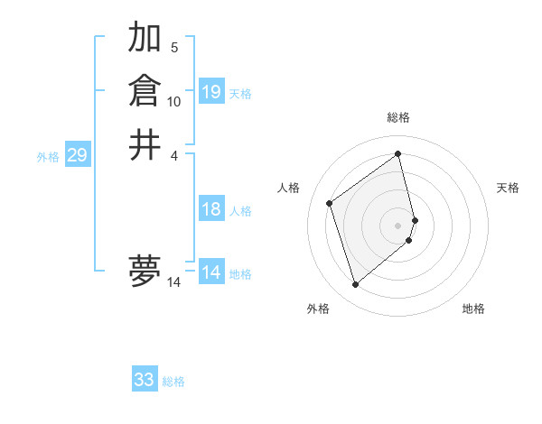 加倉井 夢さんを姓名の画数から五運を鑑定