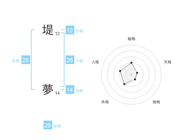 堤 夢さんの総格は26画の2点!