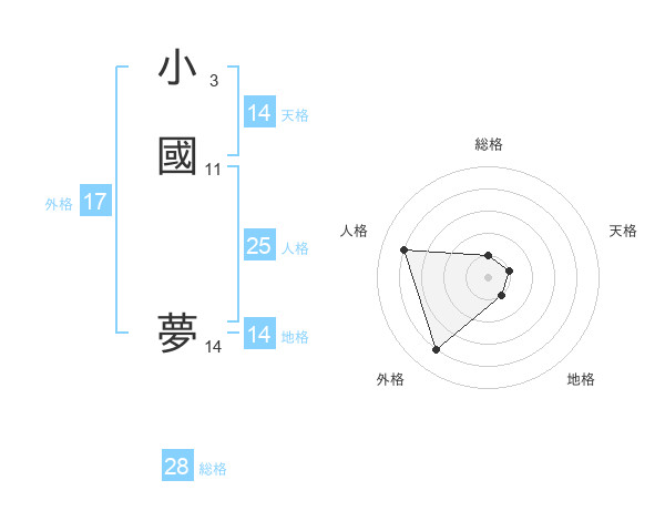 小國 夢さんの外格は17画の4点!