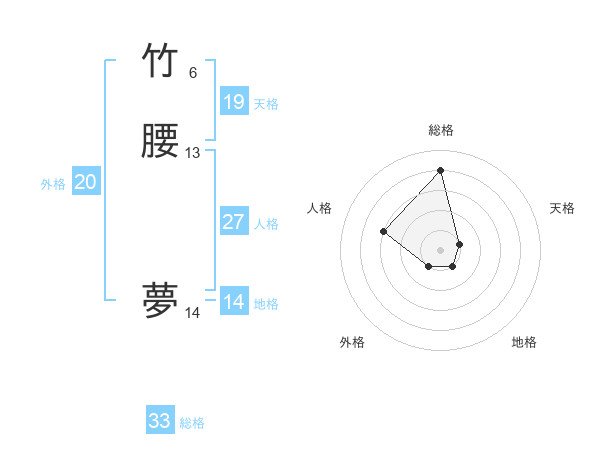 竹腰 夢さんの総格は33画の4点!
