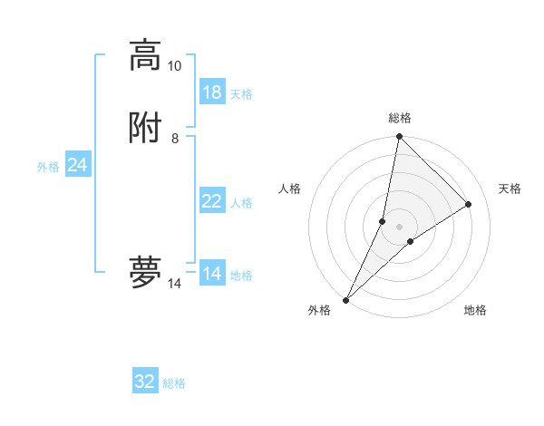 高附 夢さんの天格は18画の4点!
