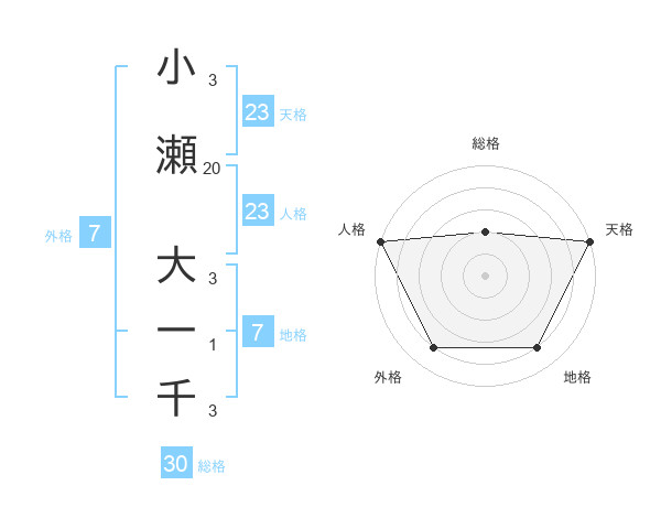 小瀬 大一千さんを姓名の画数から五運を鑑定