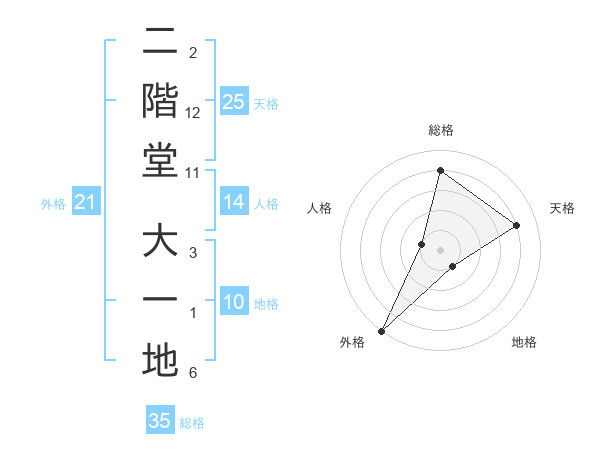 二階堂 大一地さんを姓名の画数から五運を鑑定