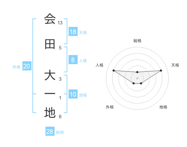 会田 大一地さんの総格は28画の1点!