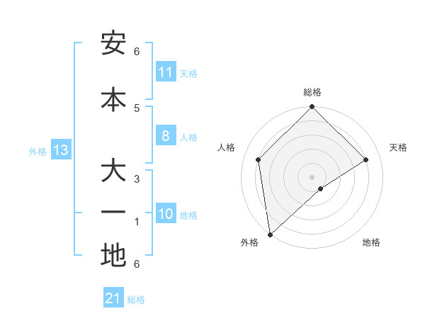 安本 大一地さんの総格は21画の5点!