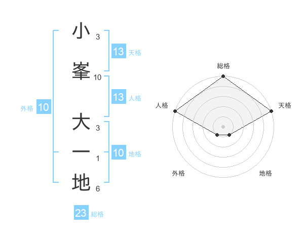 小峯 大一地さんの天格は13画の5点!