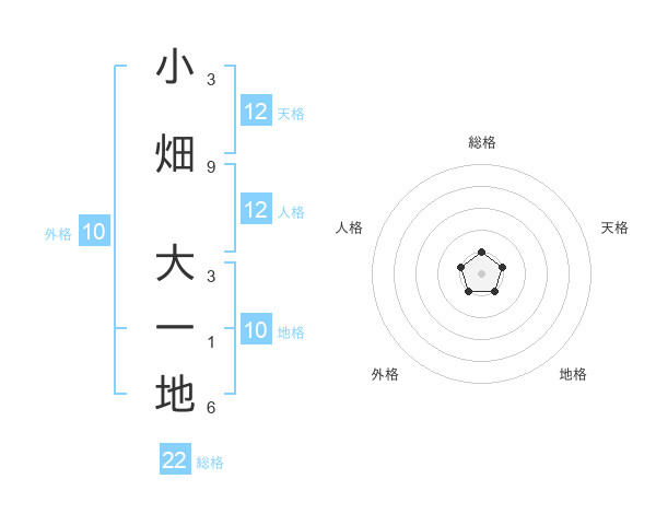 小畑 大一地さんを姓名の画数から五運を鑑定