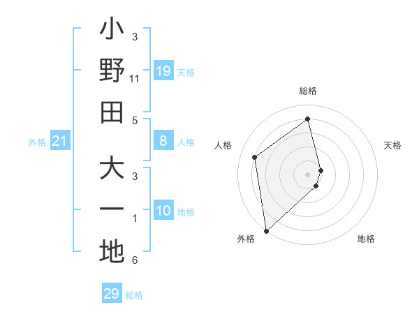 小野田 大一地さんの総格は29画の4点!