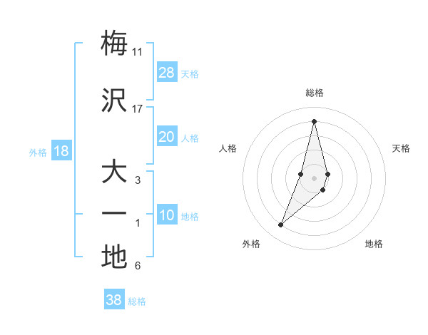 梅沢 大一地さんの総格は38画の4点!