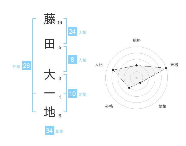 藤田 大一地さんの総格は34画の2点!