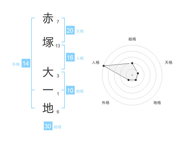赤塚 大一地さんの総格は30画の2点!