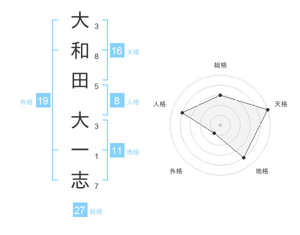 大和田 大一志さんを姓名の画数から五運を鑑定