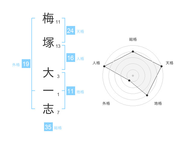 梅塚 大一志さんの総格は35画の4点!
