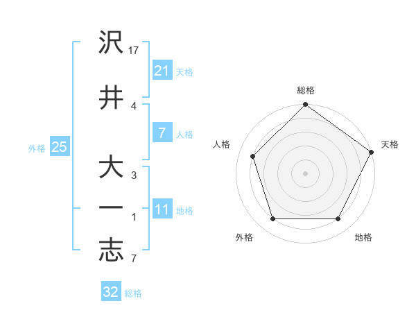 沢井 大一志さんを姓名の画数から五運を鑑定