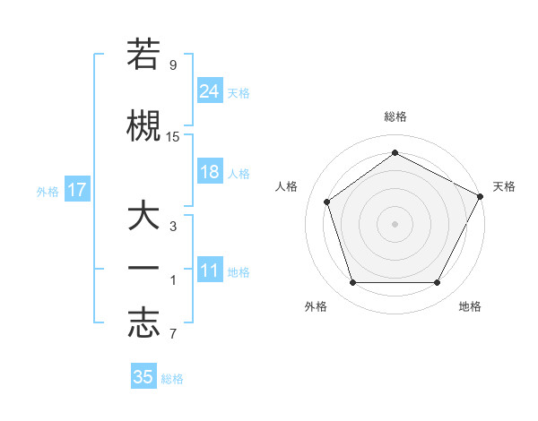 若槻 大一志さんを姓名の画数から五運を鑑定