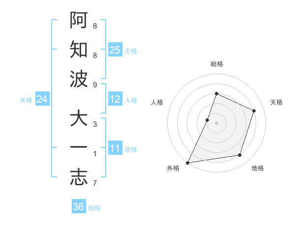 阿知波 大一志さんを姓名の画数から五運を鑑定