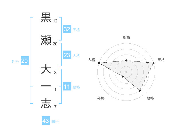 黒瀬 大一志さんの人格は23画の5点!