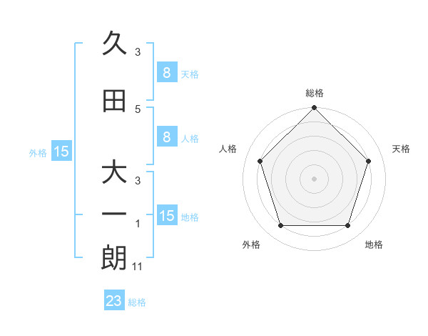 久田 大一朗さんを姓名の画数から五運を鑑定