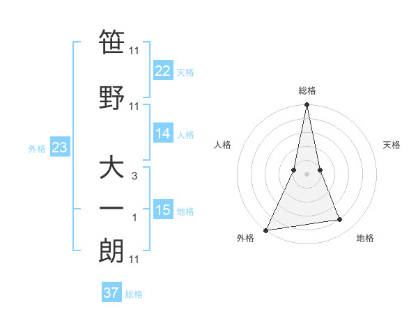 笹野 大一朗さんを姓名の画数から五運を鑑定