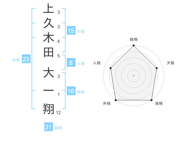 上久木田 大一翔さんを姓名の画数から五運を鑑定