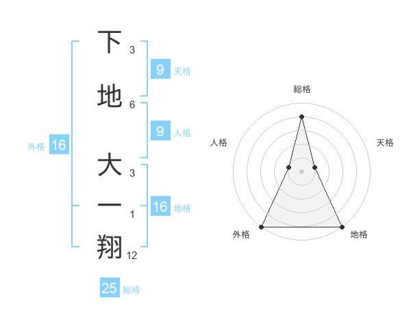 下地 大一翔さんを姓名の画数から五運を鑑定