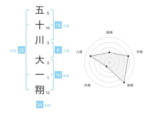 五十川 大一翔さんを姓名の画数から五運を鑑定
