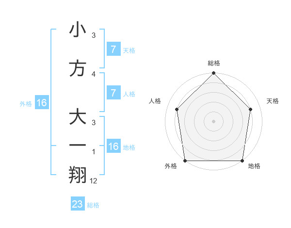 小方 大一翔さんの外格は16画の5点