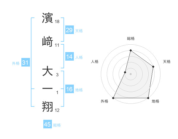 濱﨑 大一翔さんを姓名の画数から五運を鑑定