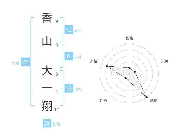 香山 大一翔さんを姓名の画数から五運を鑑定