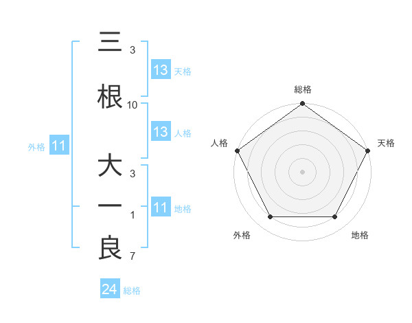 三根 大一良さんの天格は13画の5点!