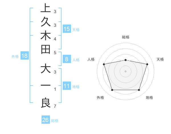上久木田 大一良さんを姓名の画数から五運を鑑定