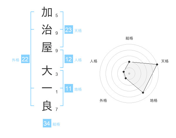 加治屋 大一良さんを姓名の画数から五運を鑑定