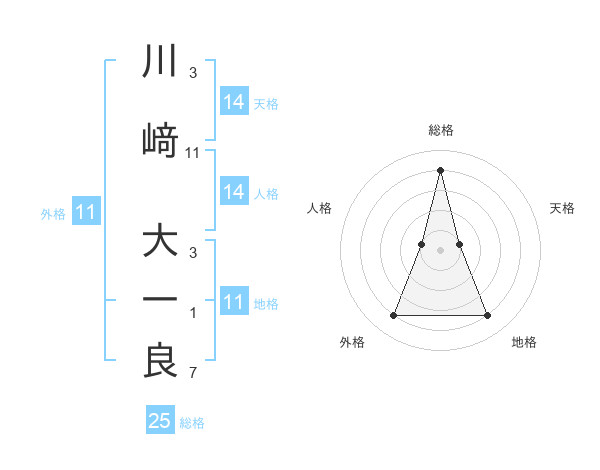 川﨑 大一良さんを姓名の画数から五運を鑑定