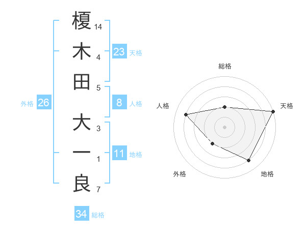 榎木田 大一良さんを姓名の画数から五運を鑑定