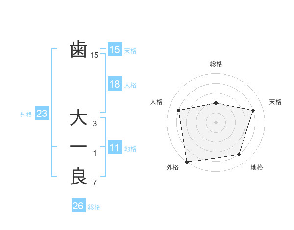 歯 大一良さんの外格は23画の5点!