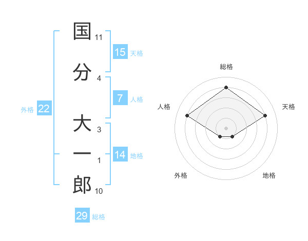 国分 大一郎さんの総格は29画の4点!