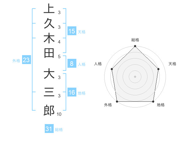 上久木田 大三郎さんを姓名の画数から五運を鑑定