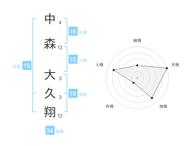 中森 大久翔さんの地格は18画の4点!